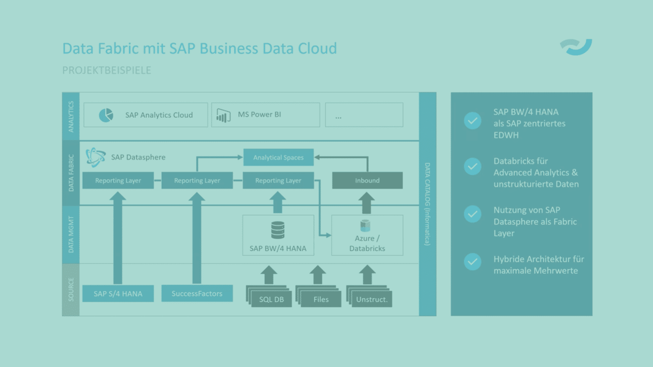 Zu Anfang des Jahres haben wir mit Ihnen einen Blick auf die diesjährige SAP Data & Analytics Strategie geworfen. Dabei beschäftigten wir uns im Webinar unter anderem mit Lakehouse Architekturen mit SAP Datasphere sowie der Relevanz von Datenprodukten in modernen Architekturen. Außerdem schauten wir uns die Integration von Business AI mit SAP Datasphere an.